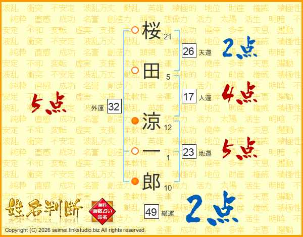 桜田涼一郎さんの総運は49画の2点!