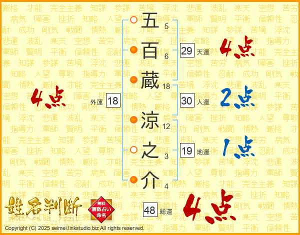 五(5画)百(6画)蔵(18画) 涼(12画)之(3画)介(4画)