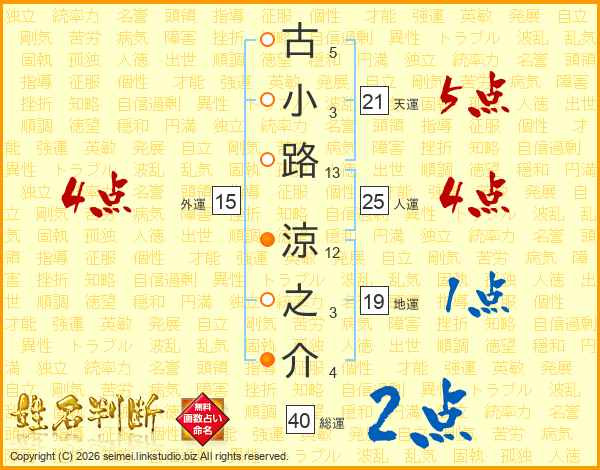 古(5画)小(3画)路(13画) 涼(12画)之(3画)介(4画)