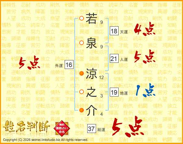若(9画)泉(9画) 涼(12画)之(3画)介(4画)