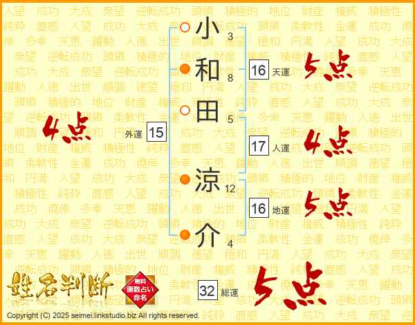小和田涼介さんの総運は32画の5点!