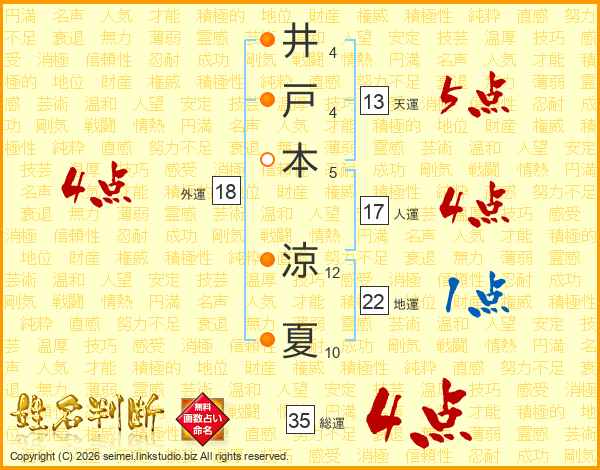 井戸本涼夏さんの総運は35画の4点!