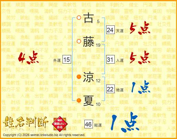 古藤涼夏さんの総運は46画の1点!