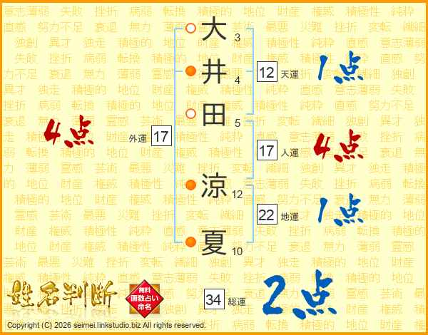大(3画)井(4画)田(5画) 涼(12画)夏(10画)
