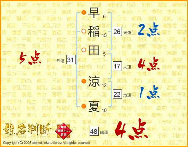 早稲田涼夏さんの総運は48画の4点!