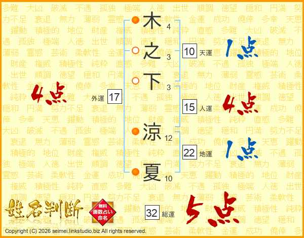 木之下涼夏さんの総運は32画の5点!