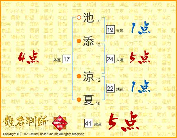 池添涼夏さんの総運は41画の5点!
