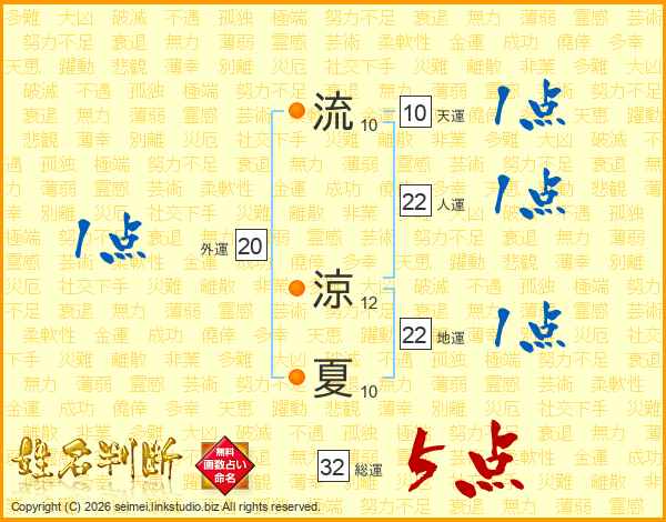 流涼夏さんの総運は32画の5点!