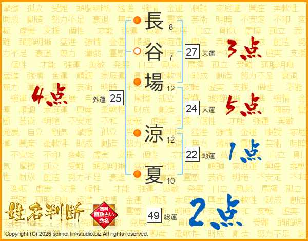 長谷場涼夏さんの総運は49画の2点!