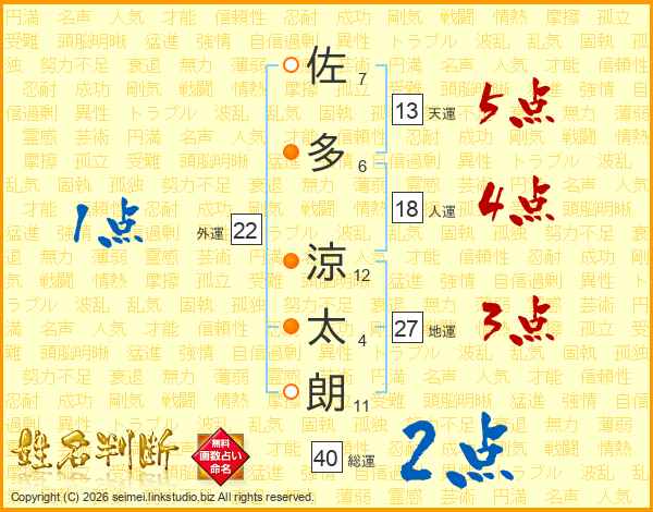 佐多涼太朗さんの天運は13画の5点!