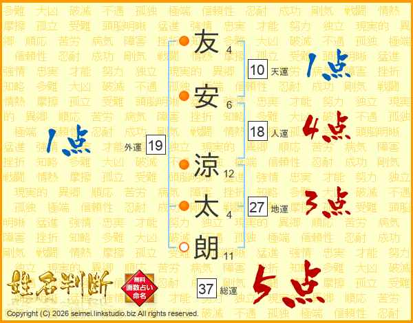友安涼太朗さんの総運は37画の5点!