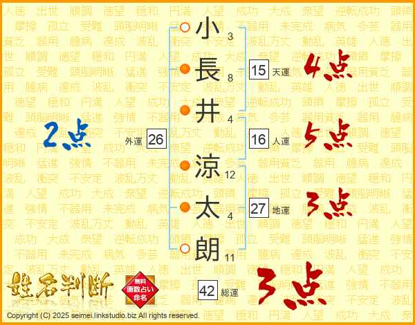 小長井涼太朗さんの天運は15画の4点!