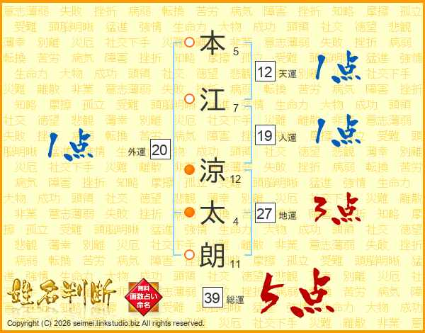 本江涼太朗さんの総運は39画の5点!