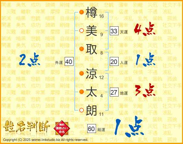 樽美取涼太朗さんの天運は33画の4点!