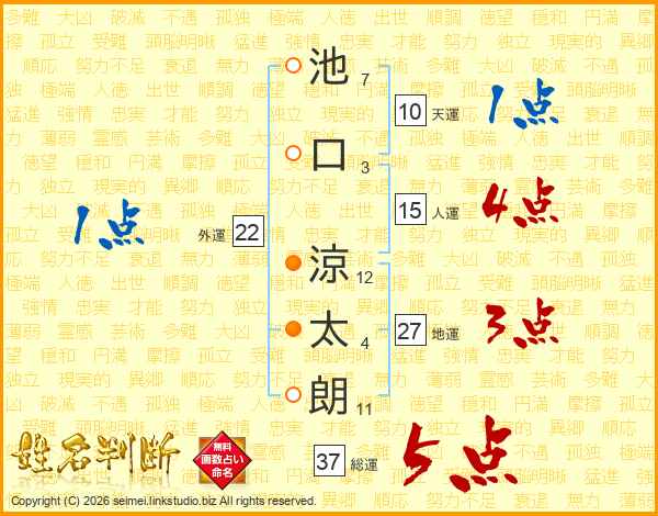 池口涼太朗さんの総運は37画の5点!