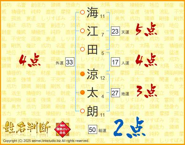 海江田涼太朗さんの総運は50画の2点!