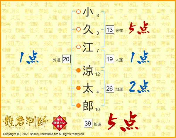 小久江涼太郎さんの総運は39画の5点!