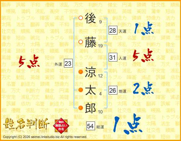 後藤涼太郎さんの人運は31画の5点!