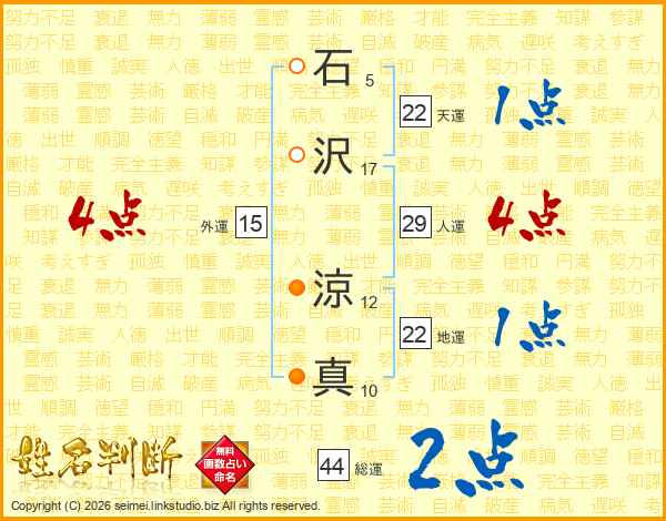 石沢涼真さんの総運は44画の2点!