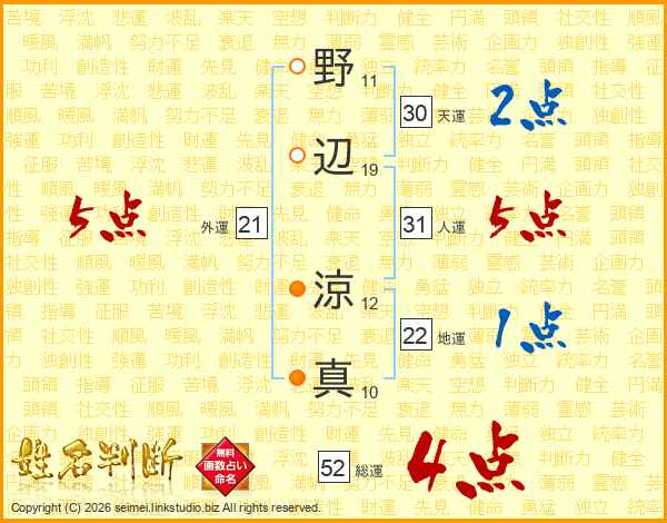 野辺涼真さんの総運は52画の4点!