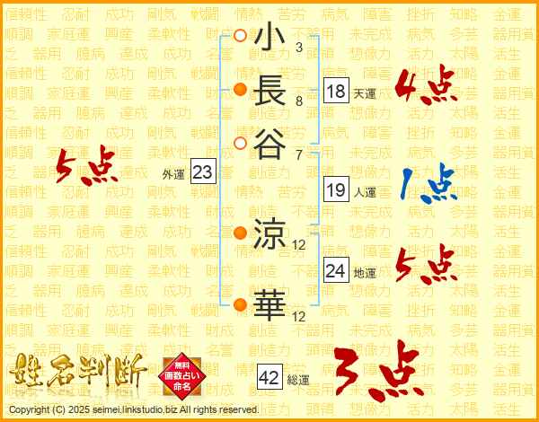 小長谷涼華さんの天運は18画の4点!