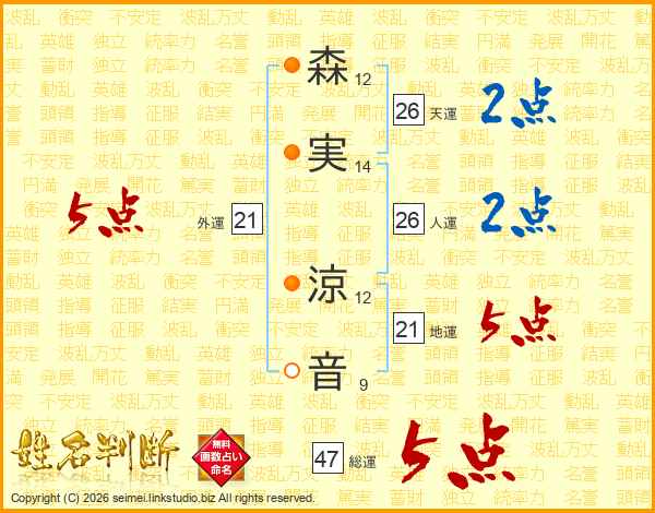 森実涼音さんの総運は47画の5点!