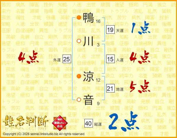 鴨川涼音さんの総運は40画の2点!
