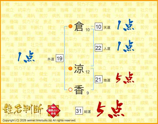 倉涼香さんの総運は31画の5点!
