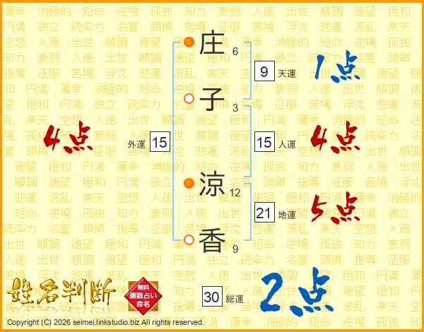 庄子涼香さんの総運は30画の2点!