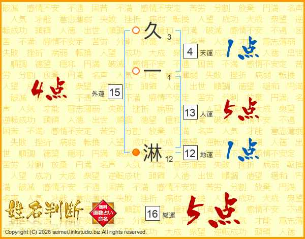 久一淋さんの総運は16画の5点!