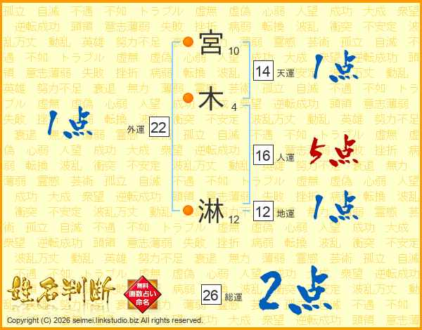 宮(10画)木(4画) 淋(12画)