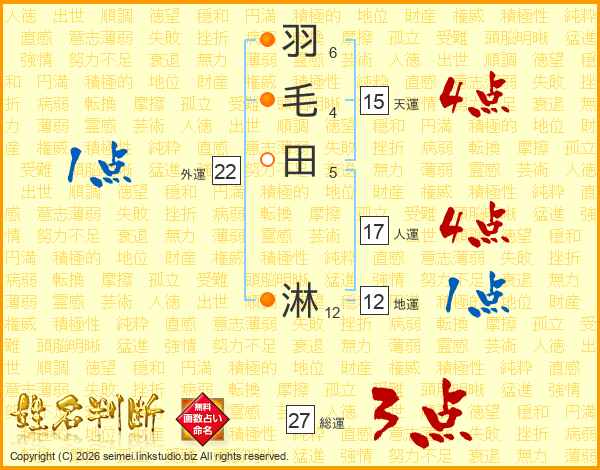 羽(6画)毛(4画)田(5画) 淋(12画)