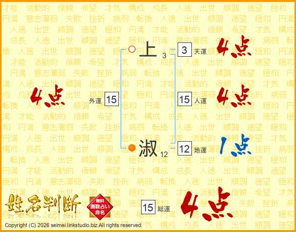 上淑さんの総運は15画の4点!