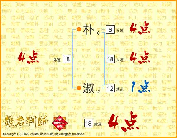 朴淑さんの外運は18画の4点!