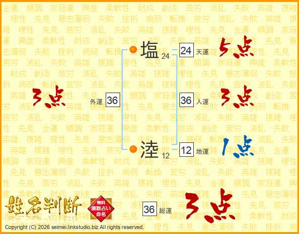 塩淕さんの総運は36画の3点!