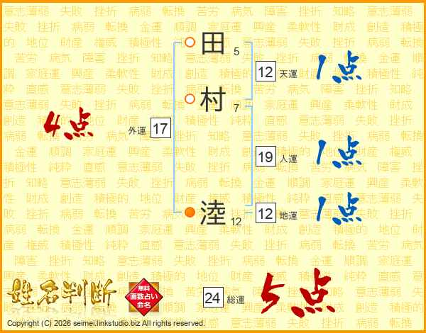 田村淕さんの総運は24画の5点!