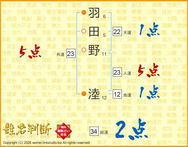 羽田野淕さんの総運は34画の2点!