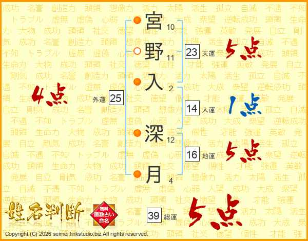 宮野入深月さんの総運は39画の5点!