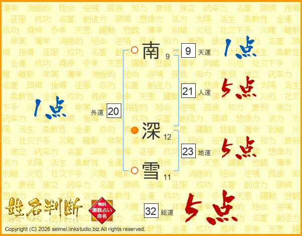 南深雪さんの総運は32画の5点!