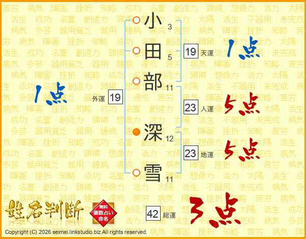 小田部深雪さんの総運は42画の3点!
