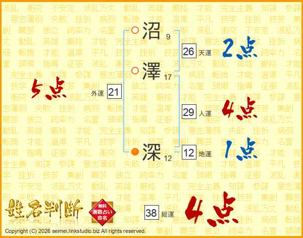 沼(9画)澤(17画)  深(12画)