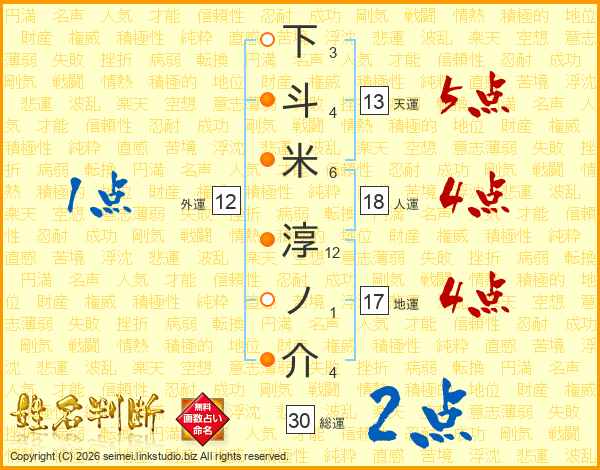 下斗米淳ノ介さんの総運は30画の2点!