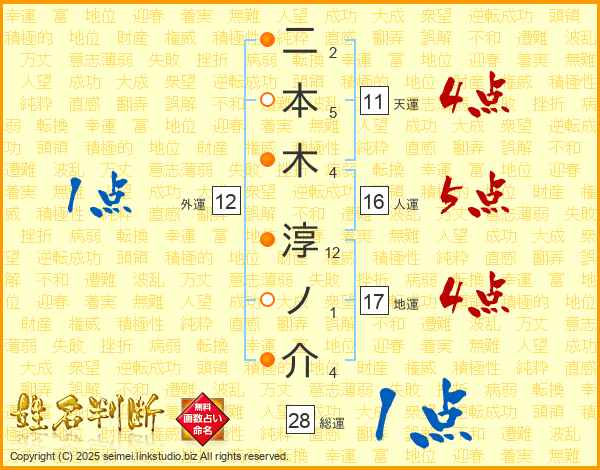 二本木淳ノ介さんの地運は17画の4点!