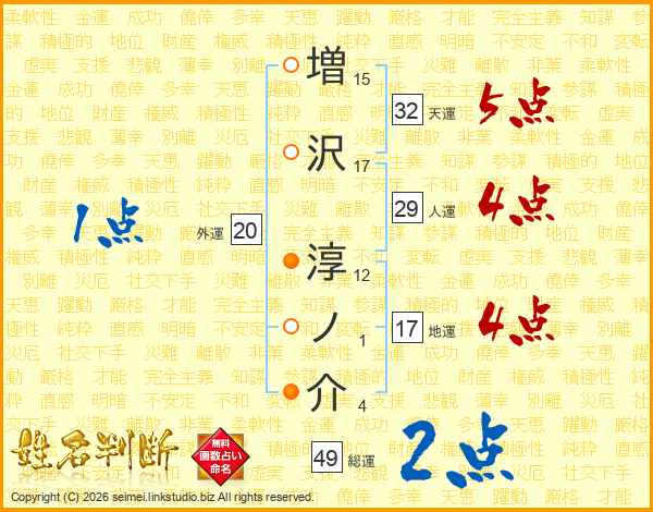 増沢淳ノ介さんの総運は49画の2点!
