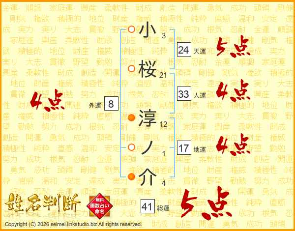 小桜淳ノ介さんの総運は41画の5点!