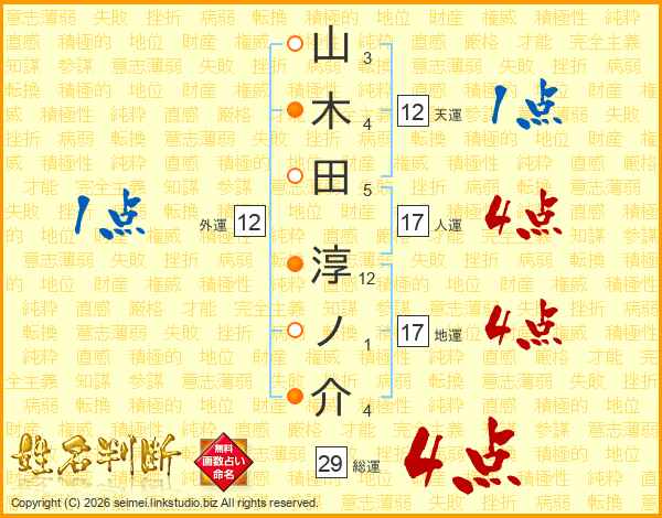 山木田淳ノ介さんの総運は29画の4点!