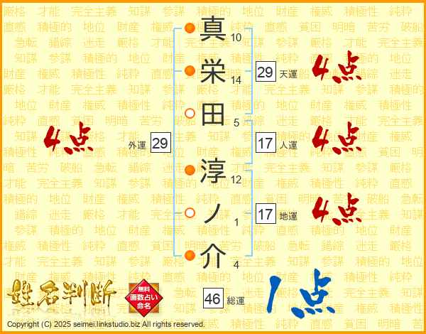真(10画)栄(14画)田(5画) 淳(12画)ノ(1画)介(4画)