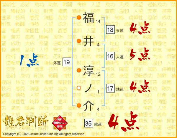 福井淳ノ介さんの総運は35画の4点!