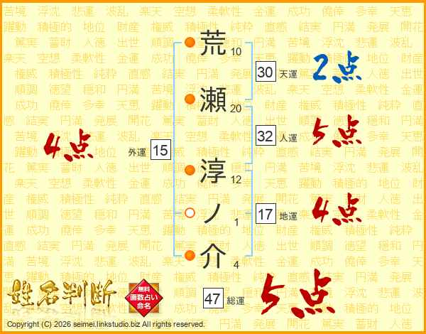 荒瀬淳ノ介さんの総運は47画の5点!