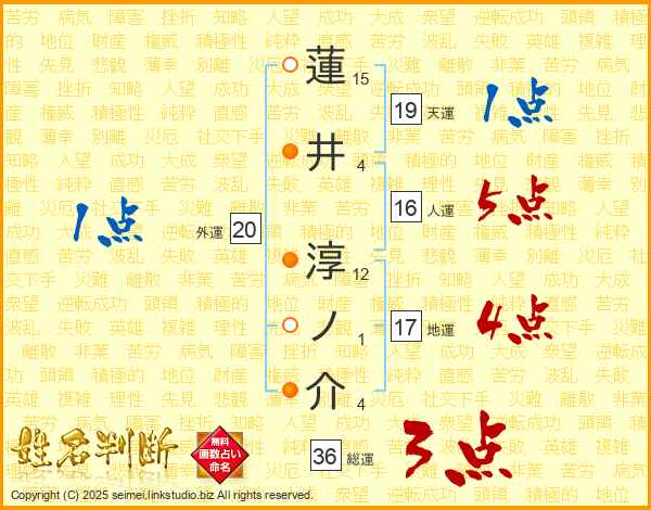 蓮(15画)井(4画) 淳(12画)ノ(1画)介(4画)